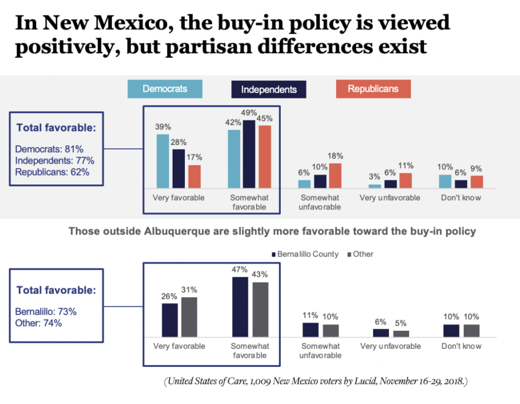 “Medicaid Buy-in has strong support with voters of all political stripes in New Mexico for a couple of reasons. First, it places the state in charge of bringing affordable health care to their residents, and second, polls show 66 percent of New Mexicans view the New Mexico Medicaid program positively,” added John McCarthy, Policy Fellow at United States of Care. “States have long been the policy laboratories where new ideas can be developed and tested, and buying into a Medicaid-like plan is no exception.”